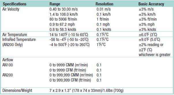 美國(guó)EXTECH AN200葉輪風(fēng)速儀的技術(shù)參數(shù):