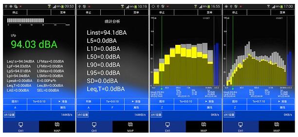 (1)傳聲器:AWA14425型預(yù)極化測試電容傳聲器,外徑Φ12.7mm(1/2〞)。標(biāo)稱靈敏度:約-29dB。頻率范圍:10Hz~20kHz。 (2) 測量范圍:28dB~133dB(A),33dB~133dB(C),38dB~133dB(Z)(以2×10-5 Pa為參考,下同)。 (3) 頻率范圍:10Hz~20kHz (4) 本底噪聲:12dB(A),17dB(C),22dB(Z)(帶前置級并通過20pF電容短路)。 (5) 頻率計權(quán):A、C、Z計權(quán) (6) 時間計權(quán):F(快),S(慢),I(脈沖) (7) 參考方向:為電容傳聲器的軸向 (8) 功能:儀器配合PC或手機軟件可實現(xiàn)總值分析、統(tǒng)計、頻譜分析等功能。注:PC、手機軟件另外提供 (9) 顯示:128×64點陣OLED (10) 硬件接口:USB (11) 數(shù)據(jù)輸出:WIFI (12) WIFI傳輸距離:10米(距離視周圍信號干擾情況可能有所減少) (13) WIFI模式:AP模式、STA模式 (14) 校準(zhǔn):使用1級或1級以上聲級校準(zhǔn)器 (15) 電源: 鋰電:充滿電后,可連續(xù)工作6小時以上 外接電源:5V 1A USB接口電源 (16) 外形尺寸:l×b×h(mm):210×68×27(mm)。 (17) 質(zhì)量:240g。 (18) 使用條件:氣 溫:-20℃~+50℃ 相對濕度:25%~90% 氣 壓:65kPa~108kPa AWA5661-W數(shù)字聲級計/噪音計軟件視圖