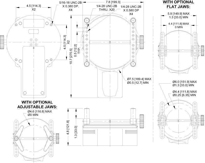 MESURgauge 測量軟件:可顯示時(shí)間與位移的關(guān)系、計(jì)算統(tǒng)計(jì)測量結(jié)果、Excel報(bào)告輸出等.需要數(shù)據(jù)線纜more info 加長圓柱:加長圓柱2.5" (63 mm) 4" (101 mm) 平口夾具:可用于夾持直角實(shí)驗(yàn)樣品等 可調(diào)夾具CT003:4邊防滑設(shè)計(jì)、可調(diào)節(jié)開口尺寸、容納多種樣品規(guī)格 校準(zhǔn)套件:可用于自行校準(zhǔn)TT01瓶蓋扭力計(jì),套件不包括砝碼。 攜帶式儀器箱:可裝TT01瓶蓋扭力計(jì),夾具,充電器,及配件. 不銹鋼加載臺(tái):預(yù)留安裝螺紋孔適用于特殊工裝的安排