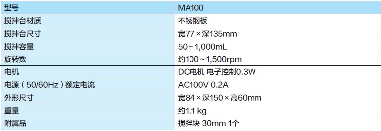 MA100日本雅馬拓磁力攪拌器的技術參數(shù):