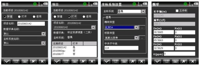 簡便的項目配置 Ⅰ項目式數(shù)據(jù)采集管理方式,可按日期或自定義新建、打開、套用項目; 數(shù)據(jù)字典可自動選擇或現(xiàn)場新建; Ⅱ坐標系統(tǒng)可設置專業(yè)的七參數(shù)或通用的五參數(shù),坐標數(shù)據(jù)可選擇經(jīng)緯度或平面坐標格式。