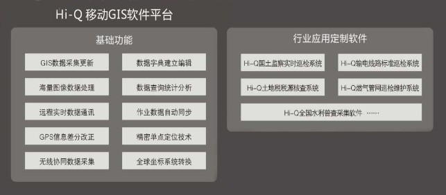 Hi-Q GIS數(shù)據(jù)采集軟件 專業(yè)為GIS應用而設計的高效率移動GIS平臺軟件,能輕松的幫您實現(xiàn)點、線、面、圖形等復雜外業(yè)GIS數(shù)據(jù)的采集和更新工作。Hi-Q軟件采用模塊化設計,能根據(jù)您的項目需要快速實現(xiàn)工作流程定制,提高工作效率。 圖形化界面設計,形象易懂,操作簡單 >方便的數(shù)據(jù)字典編輯功能,可預先建立或外業(yè)實時編輯 >提供多種位置數(shù)據(jù)和屬性數(shù)據(jù)的采集方式 >方便的長度、面積測量、計算和統(tǒng)計功能 >海量柵格和矢量圖像數(shù)據(jù)的快速處理能力 >支持遠程實時無線數(shù)據(jù)通訊和自動數(shù)據(jù)同步 >集成PPP(精密單點定位)技術 >支持SBAS、實時差分、后處理、靜態(tài)采集等工作模式 >可通過藍牙協(xié)同數(shù)碼相機、測距儀等進行數(shù)據(jù)采集 >快速的移動GIS行業(yè)應用軟件定制能力