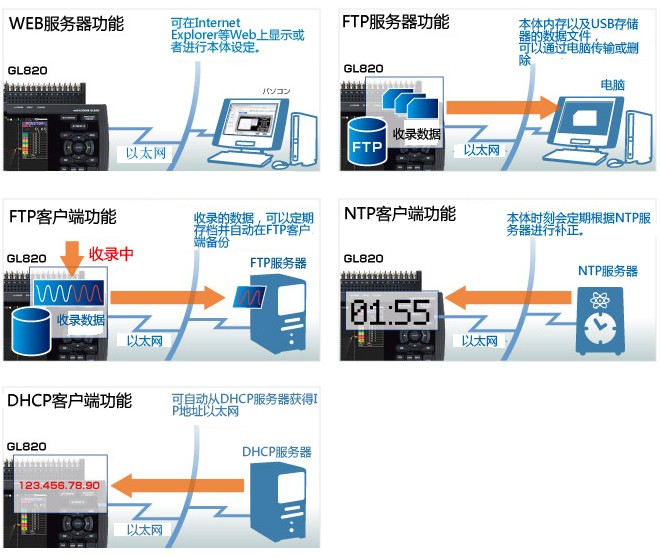 日本圖技GL820多通道存儲(chǔ)記錄儀具有多種網(wǎng)絡(luò)形式 可使用符合測(cè)定形態(tài)的網(wǎng)絡(luò)功能。