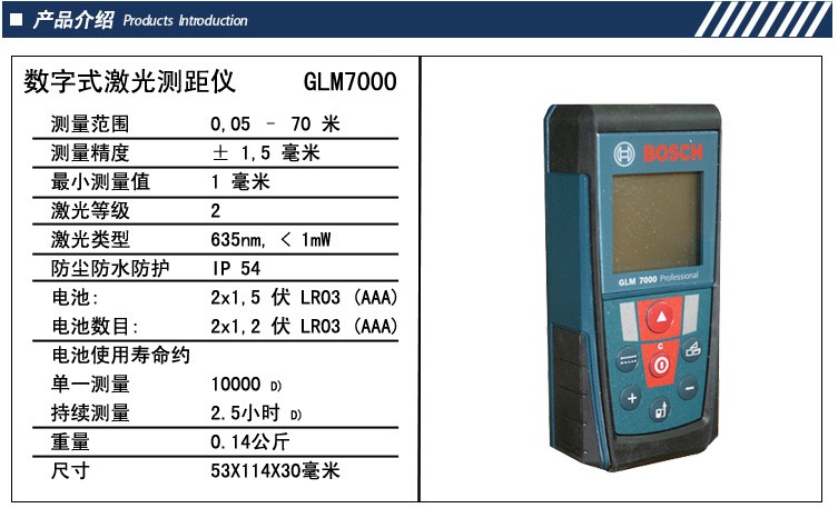 博世GLM7000手持式激光測(cè)距儀的測(cè)量距離為70米,測(cè)量精度為1.5mm。上海熙浩特價(jià)銷售
