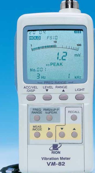 日本理音(RION)公司生產(chǎn)的VM-82便攜式數(shù)字測振儀重320克,是VM-63測振表的改進型,使用分離式振動傳感器,可對微小振動及超強振動進行測量, VM-82便攜式數(shù)字測振儀可測機械設備的振動位移、速度(烈度)和加速度。 VM-82便攜式數(shù)字測振儀可以儲存1000組測點的數(shù)據(jù),并能與微機進行通訊。已開發(fā)的軟件具有如下功能: (1).信息管理(包括機器、測點及測試數(shù)據(jù)的管理、建立檔案) (2). 儀器與微機通訊 (3).趨勢分析 (4).打印報表(機器報表、測點報表) (5).狀態(tài)判斷(自動判定狀態(tài):良好、注意、危險)